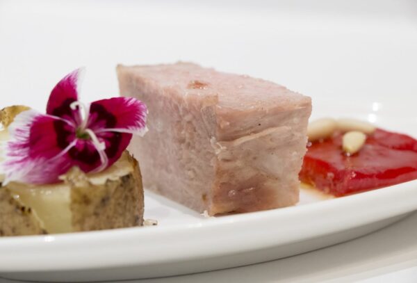 Lomo ibérico al horno con patata asada y pimiento del piquillo confitado