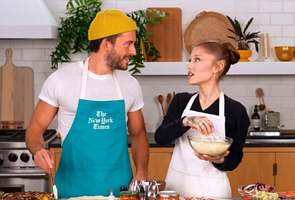 Ariana Grande y Jonathan Bailey preparan pizzas para el NY Times