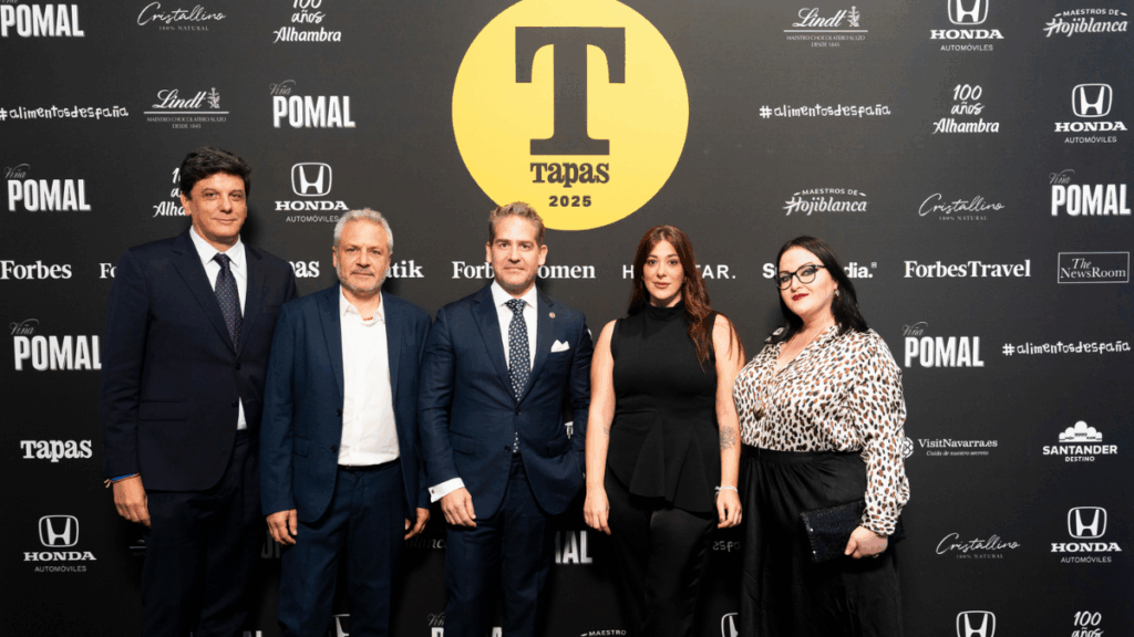 Marta Flich Presentadora del eventoAndrés Rodríguez, presidente de SpainMedia y editor y director de Tapas Magazine, Fer Francés es una figura clave del arte contemporáneo, reconocido por su trayectoria como galerista y comisario. Es fundador y director de Galería VETA by Fer Francés, una de las galerías de arte más importantes de Madrid. Ignacio Quintana Chief Executive Officer – CEO Forbes España Andrés Rodríguez, presidente de SpainMedia y editor y director de Tapas MagazineEl evento ha sido patrocinado por Viña Pomal, nuestra marca de prestigio de vino tinto de Rioja con más de un siglo de historiaUno de nuestros patrocinadores, el Honda Civic e:HEV Full Hybrid combina un diseño elegante con un sistema híbrido autorrecargable que ofrece eficiencia y una conducción suaveBenji Verdes entrega a Arnau Muñío de Direkte (Catalunya)Lucía Pomo con uno de nuestros coches Honda Honda Civic e:HEV Full Hybrid.El evento ha sido patrocinado por Viña Pomal, nuestra marca de prestigio de vino tinto de Rioja con más de un siglo de historiaIban García creador de contenido, videoblogger e influencer español llega a nuestro evento con una Honda Civic e:HEV Full Hybrid. Comodidad y elegancia En la galería de arte Veta presente también Cervezas Alhambra uno de los patrocinadores del eventoViu y Diego Fernández de Regueiro con el Premio T de OroMarta CameliUno de nuestros patrocinadores pan cristallino es un tipo de pan muy ligero y crujiente, conocido por su miga casi transparente y llena de alveolosSara Cisneros entrega a Guti Moreno de Tupío (Extremadura)Uno de nuestros patrocinadores pan cristallino es un tipo de pan muy ligero y crujiente, conocido por su miga casi transparente y llena de alveolosEl evento ha sido patrocinado por Viña Pomal, nuestra marca de prestigio de vino tinto de Rioja con más de un siglo de historiaÁngela Rozas Sáiz, «Madame de Rosa»T de Oro de Galicia a Miguel González Comunidad de Navarra con sus productos presente en nuestro evento. Por supuesto, no podía faltar nuestra revista Tapas, presente en todas las mesasNawal Abdeselam Amar de La Morena Trastienda, de Ceuta, con representantes de la Cámara de comercio de CeutaLucía Pombo con la ganadora Nawal Abdeselam Amar de La Morena Trastienda, de CeutaEmi Thea Habjanic ganador de la T DE ORO Madrid, Ángel de Oteo Mancebo DG de Agricultura, Ganadería y Alimentación, Jeicar Molina Barrado Ganador T de Oro de Viña PomalComunidad de Navarra con sus productos presente en nuestro eventoEntrega a José María Borrás de AquiaraUno de nuestros patrocinadores, Lint, ofrece chocolate de calidad premium, suave y delicioso, ideal para disfrutar en cualquier momento«Tierra de Sabor» es la marca de garantía que certifica y distingue los productos agroalimentarios de calidad producidos, elaborados o transformados en Castilla y LeónVíctor Suárez de HaydéeUno de nuestros patrocinadores, Mundibérico, ofrece productos ibéricos de alta calidad, combinando tradición y sabor auténtico en cada bocado«Tierra de Sabor» es la marca de garantía que certifica y distingue los productos agroalimentarios de calidad producidos, elaborados o transformados en Castilla y LeónVerónica Sánchez es la creadora del proyecto social @Oh.MamiBlueEn la galería de arte Veta presente también Cervezas Alhambra uno de los patrocinadores del eventoÍñigo Lavado, aclamado chef vasco de ItzuliIgnacio Quintana Chief Executive Officer – CEO Forbes España, Inma Garrido Redactora jefa en Tapas Magazine, Javier Márquez Sánchez Subdirector de TapasLuc Loren influencer, DJ, presentador de televisiónUno de nuestros patrocinadores, Maestros de Hojiblanca, una marca de aceite de oliva virgen extra reconocida por su calidad y su arraigo en la tradición olivarera española.El Chef Cristian Granero de AnheloAntonio Estebán director comercial de motor, Lucia Bueno Europastry, Alba Fernández delegada comercial de Spainmedia en Catalunya, Lorena Sobrón Head of Business Development & Corporate Partnership Forbes House, Joaquín Torreblanca Director Digital de Forbes EspañaUno de nuestros patrocinadores, Mundibérico, ofrece productos ibéricos de alta calidad, combinando tradición y sabor auténtico en cada bocadoEn la galería de arte Veta presente también Cervezas Alhambra uno de los patrocinadores del eventoIban García creador de contenido, videoblogger e influencer español Jefe de la Sección de Marketing Turístico y Comunicación de NavarraLa crema de orujo Sierra del Oso es un licor tradicional de Liébana, Santander, presente en nuestro evento en Galería VetaDiego Domínguez Almudévar, conocido con el pseudónimo diegodoal. Es un popular creador de contenidos, cocinero e influencer españolVerónica Gómez La comunidad de Madrid presente con sus productos en nuestro evento en Galería Veta.Ruth Alejandre- Communications HQ at Minor Hotels, Prificacion Gonzalez Camacho – Alimentos de España, Jose Miguel Herrero Alimentos de España, Lorena Marcello (SpainMedia)El Vermouth Siderit es un vermú artesanal español. Producido en Cantabria, Santander, ganó el Premio Alimentos de España a la Innovación en 2017; presente en nuestro evento.Ceuta con sus productos presente en nuestro evento en Galería VetaRafael Garcia (Mundiberico), Alba Hernandez (Spainmedia), Natalia Sagales (Honda), Victor Sanchego (Mundiberico)Uno de nuestros patrocinadores, Maestros de Hojiblanca, una marca de aceite de oliva virgen extra reconocida por su calidad y su arraigo en la tradición olivarera españolaLorena Marcello, Luis Rodríguez, Fer FrancésJavier Garcia Manjon (Castilla y Leon, tierra de sabor), Antonio Nuñez (SpainMedia), Rafael Saez Gonzalez (Castilla y leon tierra de sabor)Valvanera Gol Gascón Alimentos de Aragón, Ángel Moreno es el fundador y CEO de Enjoy Zaragoza, Amparo Cuéllar Alimentos de Aragón En la galería de arte Veta presente también Cervezas Alhambra uno de los patrocinadores del eventoMacarena Martí