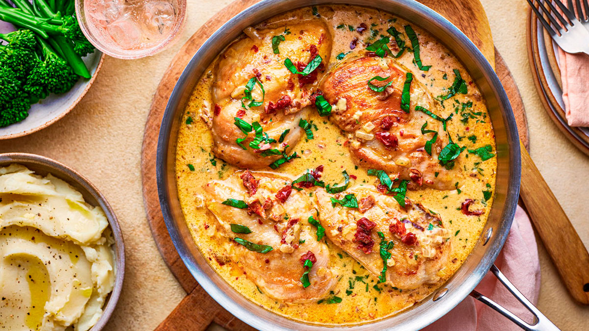 La receta con la que casarse eternamente. Una receta de pollo guisado con una cremosa salsa de tomates secos, nata y queso parmesano que inventaría la editora ejecutiva de Delish en 2016, y que, desde entonces, no ha parado de difundirse en las redes. Este año alcanzó su momento álgido cuando los creadores de contenido empezaron a reinventar la receta con otros formatos de pasta o de zucchini.