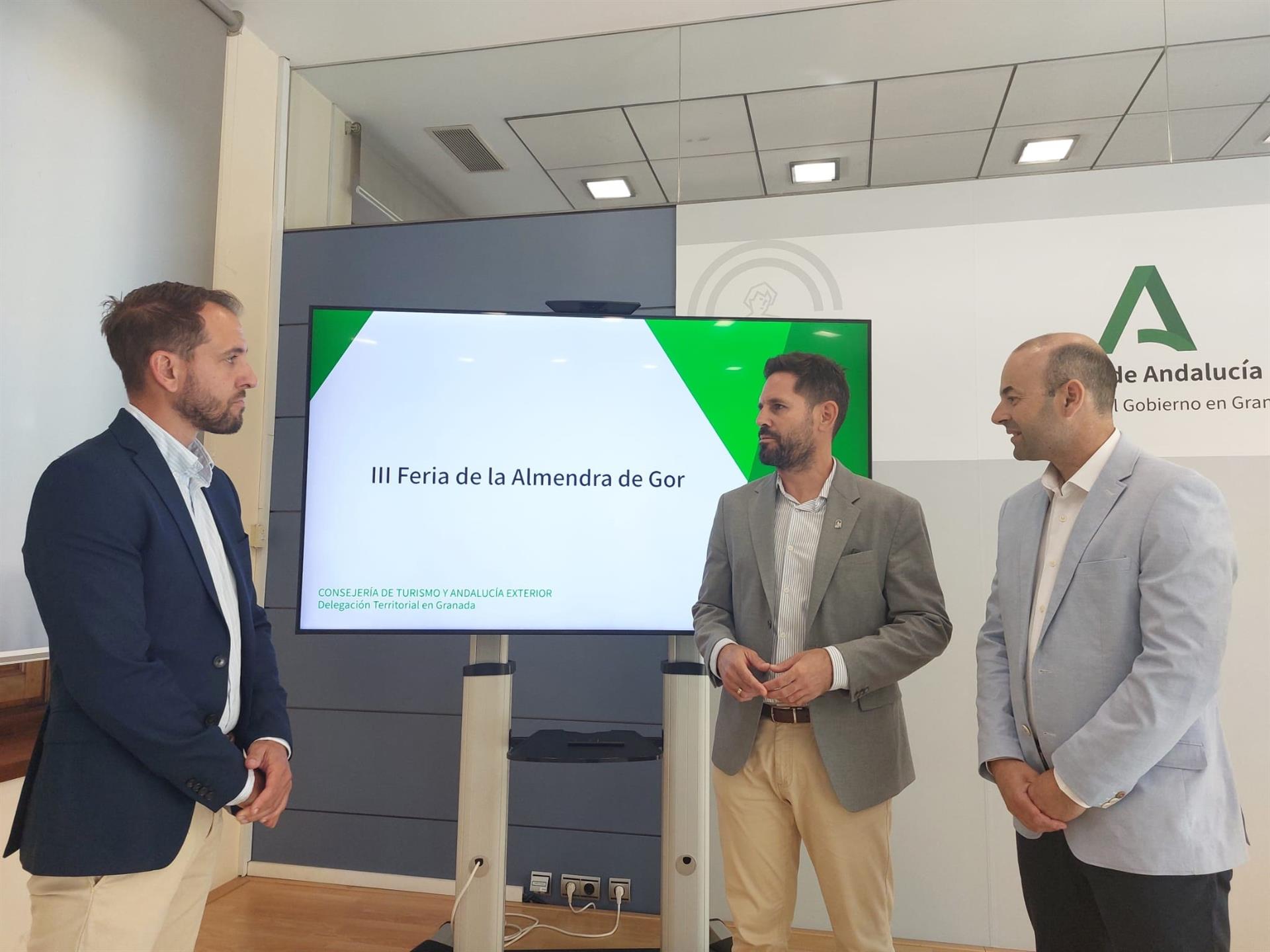 El delegado de Turismo, Cultura y Deporte de la Junta en Granada, David Rodríguez, ha presentado este lunes la feria junto al alcalde de Gor, José Antonio Lozano, y el primer teniente alcalde, Ambrosio Molina.