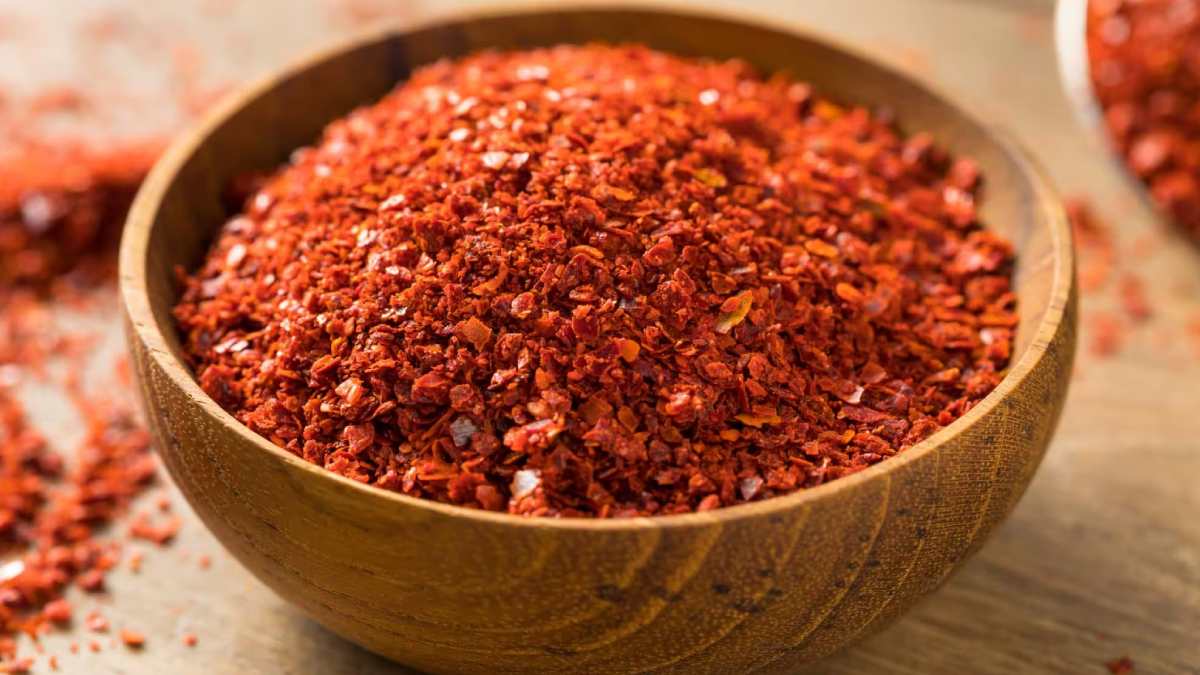 - Gochugaru 고춧가루 (ko-chu-ka-ru) Los copos de pimiento rojo seco.