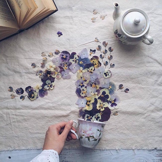 Hay gente que se obsesiona con cosas tan dispares como el té y las flores, así que lo mejor que se le ha ocurrido a Marina Malinovaya, la artista en cuestión, ha sido fusionar ambos gustos en uno solo.