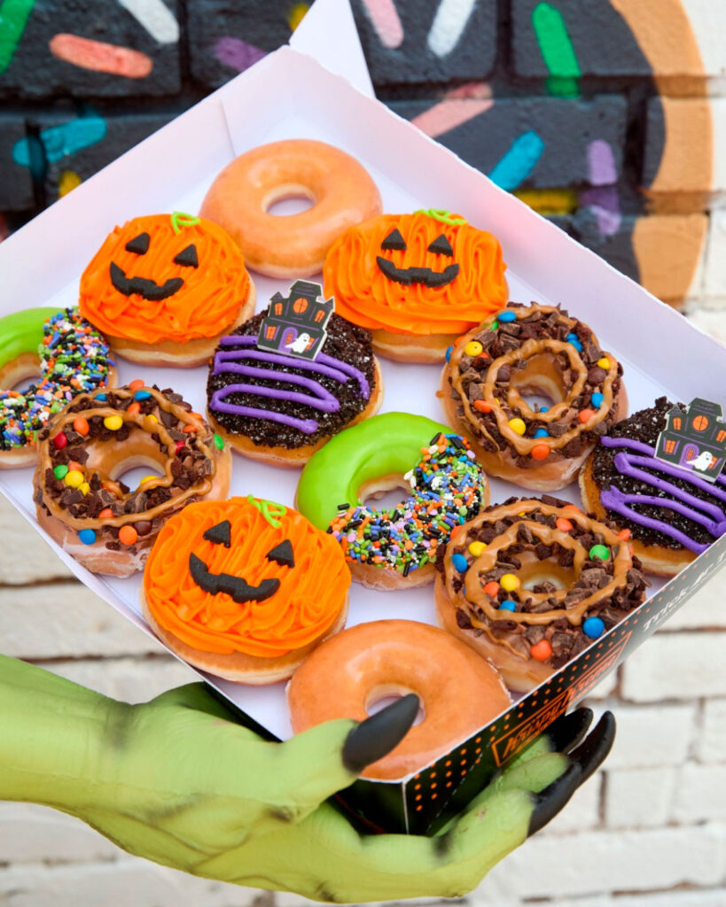 El foco también se coloca aquí sobre el donut «Jack-O-Lantern«, que cuenta con un divertido diseño de calabaza naranja cubierto con un glaseado, y un relleno de crema de mantequilla. El donut «Spooky Sprinkle» completa el surtido con un glaseado verde neón y una cobertura de chispas de colores.