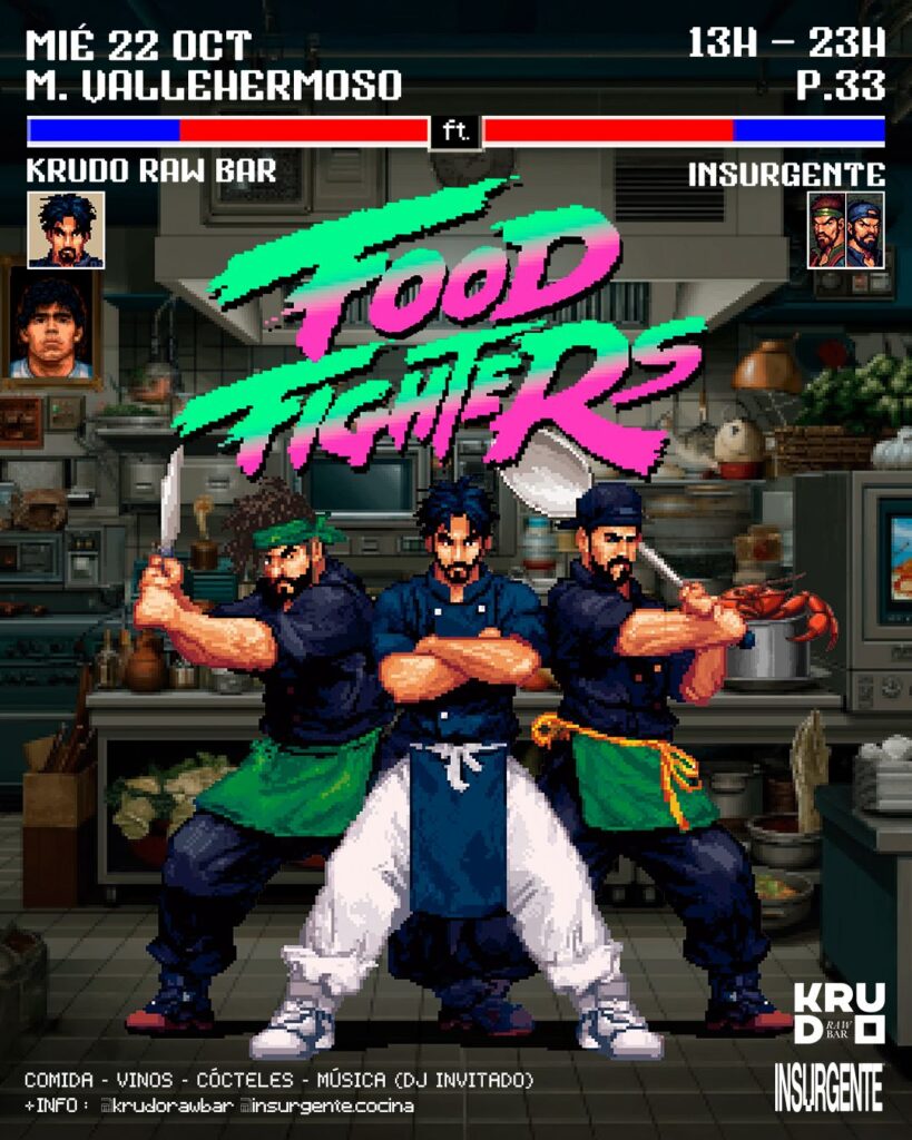 «Food Fighters» presenta una experiencia efímera que combinará buena comida, música y mucho champagne en base al ADN de ambos restaurantes. En formato non stop, desde el mediodía hasta la noche, Genaro Celia y Agustín Mikielievich (Insurgente) junto a Rafa Bergamo (Krudo) servirán desde el ring un menú de seis pases pensado para compartir que viaja por países como Perú, Corea, Japón, México o Tailandia.