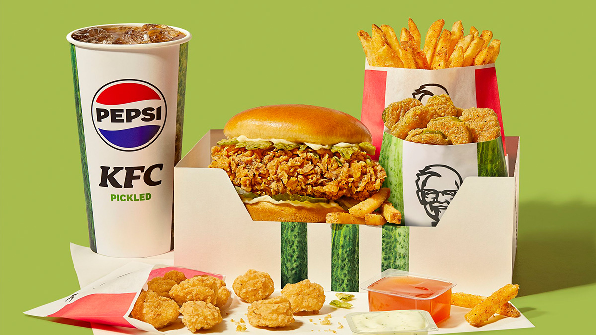 Cuando pensábamos que el boom de los pepinillos se había acabado, llega KFC y lanza un menú basado íntegramente en el encurtido. De principio a fin. En él, la gran protagonista es la hamburguesa de pollo frito triple rebozado con crujientes rodajas de pepinillo, mayonesa, pepinillos en vinagre y mantequilla.