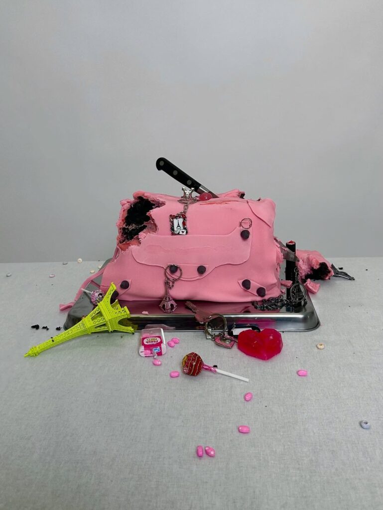 El food couture elevado. La comida, como parte cada vez más integral del mundo de la moda, se confecciona aquí a través de la repostería de lujo como un medio con el que explorar una era impulsada por la tecnología. En base a esa visión, la diseñadora despliega una colección gigante de piezas para su propia marca y/o proyecto, y customiza otras para firmas de referencia dentro del sistema como Miu Miu o Valentino que desearíamos llevarnos a la boca.