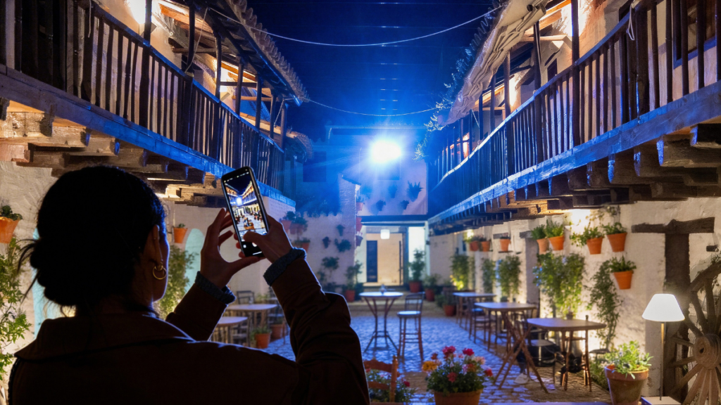 Y de la luz, a la penumbra, la oscuridad. Porque Córdoba, bella por el día, adquiere una magia especial cuando las luces caen. Puntos como la plaza de Capuchinos, con ese empedrado, el Cristo de los Faroles en el centro, las velas rojas a sus pies, las cruces de fondo y el blanco de las pareces, son ideales para poner a prueba la captura de imagen potente y versátil de Xiaomi 17 Ultra en condiciones de poca luz. Un recorrido por callejuelas y plazas emblemáticas que se disfrutan a golpe de clic, bajo las indicaciones de Javier Corso, quien invita a sacarle el máximo partido al dispositivo.