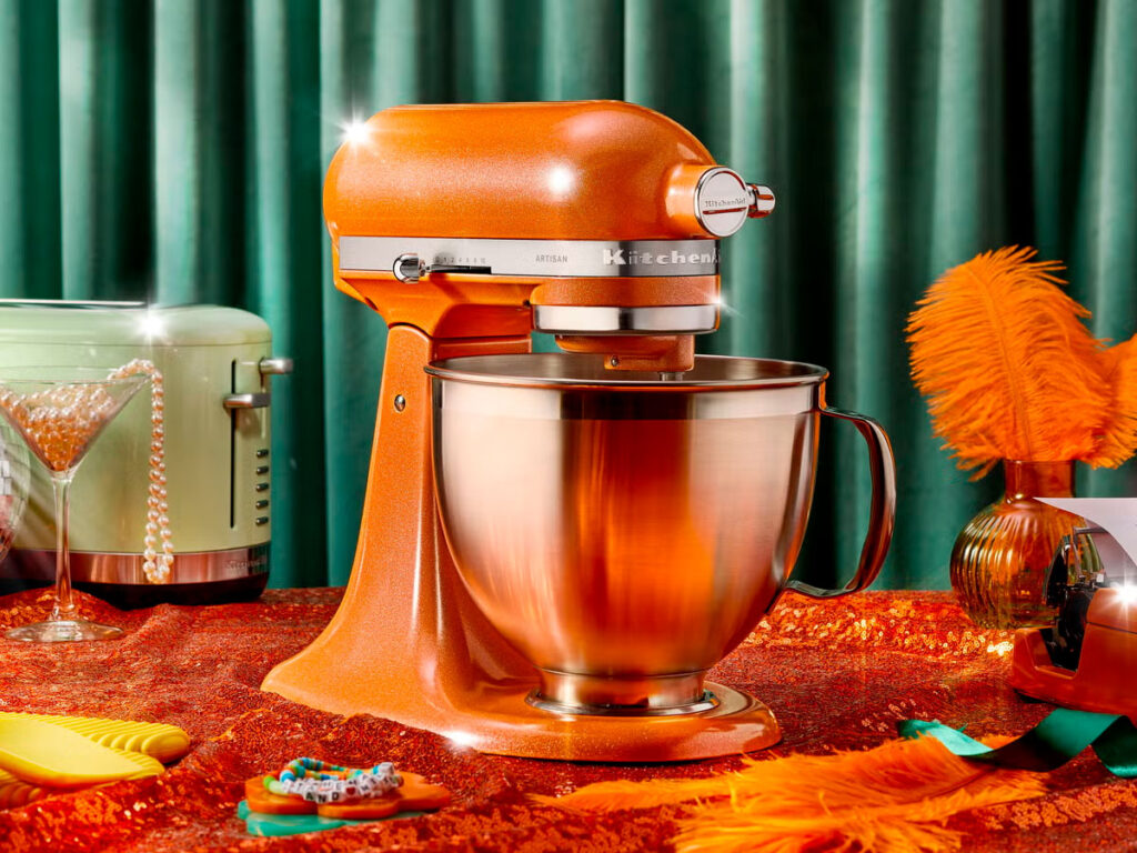Saca a relucir tu lado más showgirl. La batidora «Tangerine Twinkle» de KitchenAid es una referencia directa al próximo álbum de Taylor Swift “The Life of A Showgirl”, con todo el brillo y los destellos que reproduce. La marca traslada el concepto del disco a una batidora naranja con un acabado deslumbrante con el que iluminar toda la cocina.