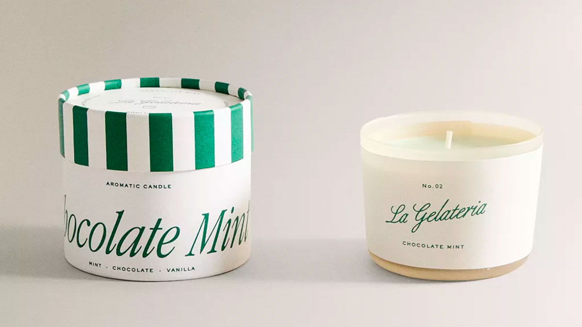 Zara Home quiere que nuestro hogar se impregne de notas de chocolate y menta, incorporando este nuevo sabor a su gama ‘La Gelateria’ en la que despliega una suculenta variedad de aromas comestibles entre los que encontrar fragancias de vainilla y nueces o vetiver y mango.