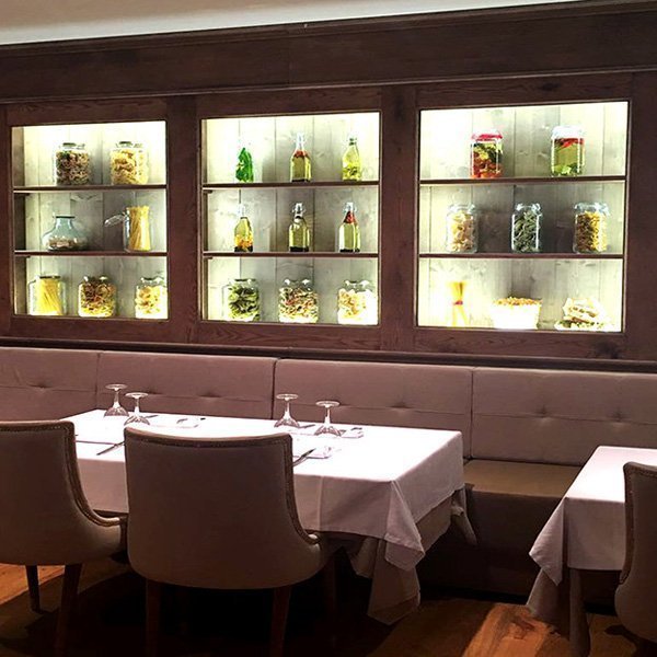Este nuevo local escenifica las buenas artes culinarias de Italia con una carta variada, desde platos de pasta, salsas y pizzas bajo el concepto de cocina abierta, por lo que la vista también juega un papel tan importante como el gusto.