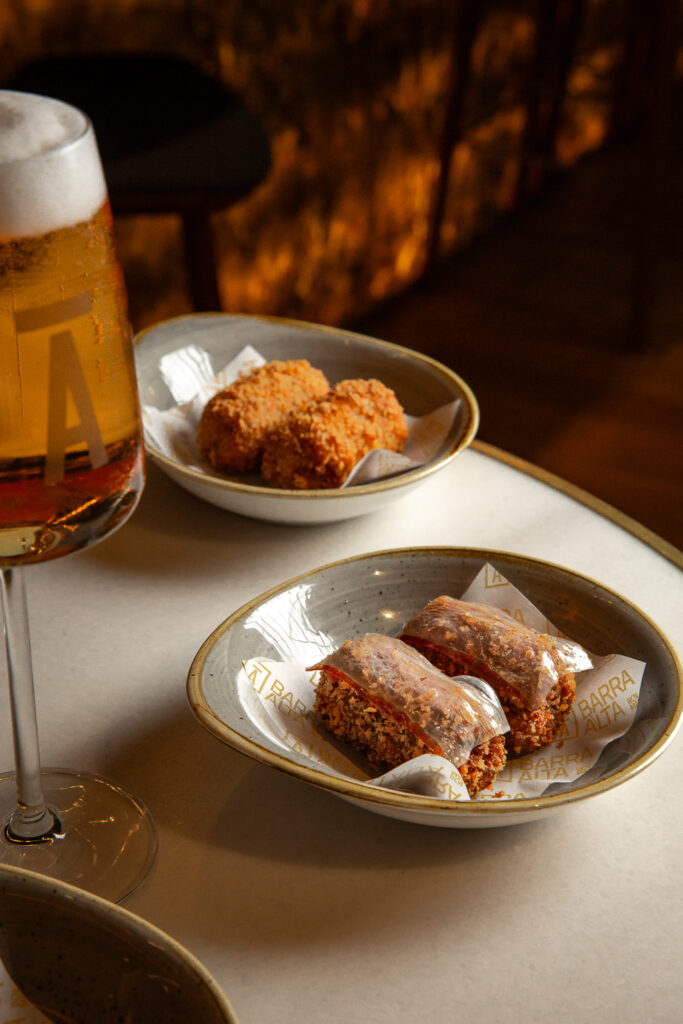 En Barra Alta Madrid el chef catalán Dani Roca propone dos versiones imprescindibles del bocado: la croqueta de carnes rustidas a fuego lento y foie Rougié, y la de boletus con velo de panceta ibérica Casalba que se deshace en la boca.
