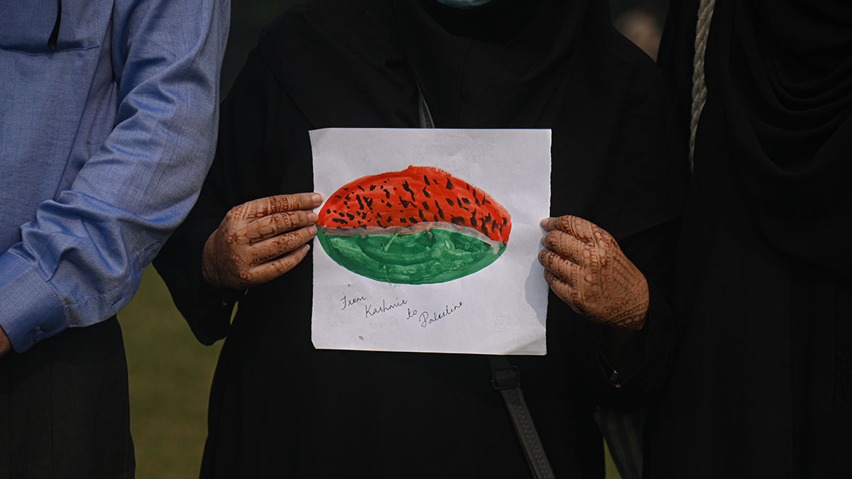 El significado simbólico de la sandía para los palestinos podría sintetizarse a través unos versos que recoge el poema ‘Oda a la sandía’ de Aracelis Girmay. «En Palestina, donde es un crimen ondear la bandera de Palestina, se levantan mitades de sandía contra las tropas israelíes por el rojo, negro, blanco y verde de Palestina«.