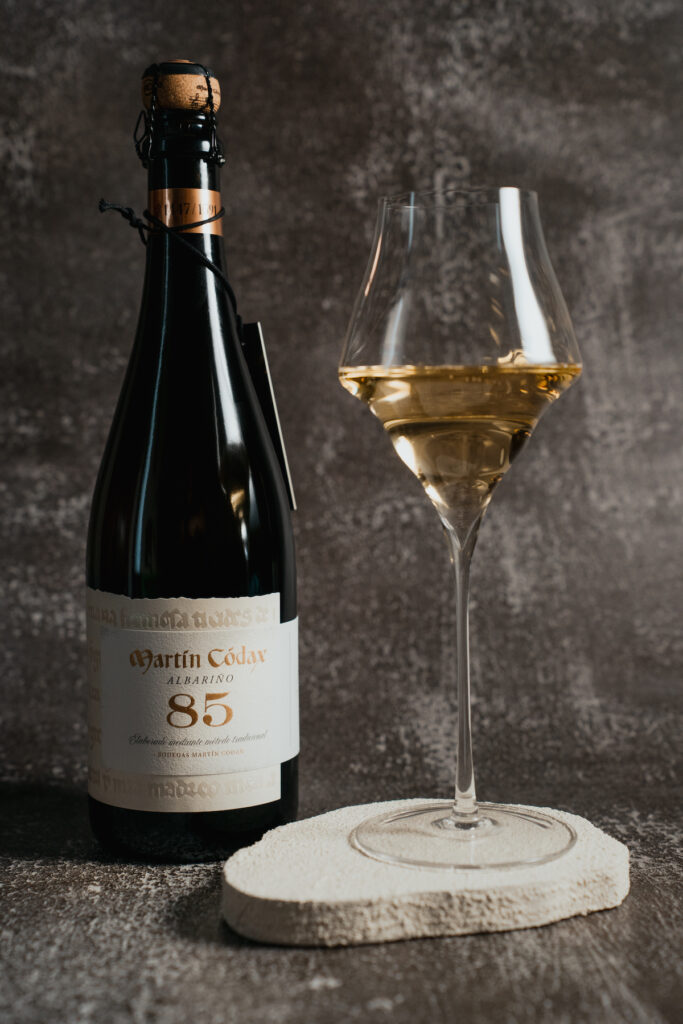 Asentados desde hace cuatro décadas en el corazón del Val do Salnés, en Martín Códax llevan el ritmo natural impregnado en cada paso, ya que es el mar quien inspira y condiciona cada movimiento. Por este motivo, fruto de la observación y el aprendizaje, el trabajo que se realiza en esta bodega es respetuoso con el entorno, pausado y paciente; cada movimiento se hace con intención y atención plena. Luego, la fuerza del Atlántico se siente en la copa a través de un baile de profundidad y refinamiento, como son, en el caso de Martín Códax 85, los matices a panadería fina, notas cítricas y fondo salino. También lo hace en el diseño de la botella, que es limpio, sobrio y elegante para transformar el encuentro en la mesa.