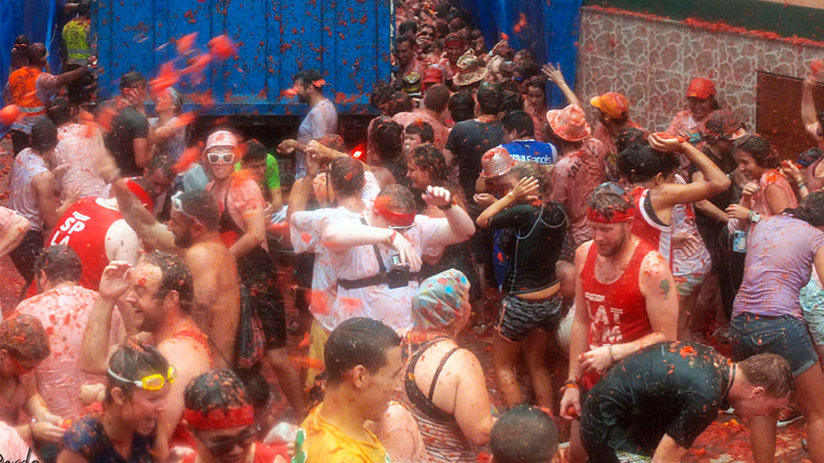 Desde primeras horas de la mañana, Buñol recibió a los más de 22.000 asistentes que acudieron desde más de 20 países distintos. A las doce del mediodía, un cohete marcó el inicio de la lucha tomatil. En ese instante, siete camiones descargaron 120.000 kilos de tomates no aptos para el consumo, con el objetivo de no generar desperdicio alimentario.