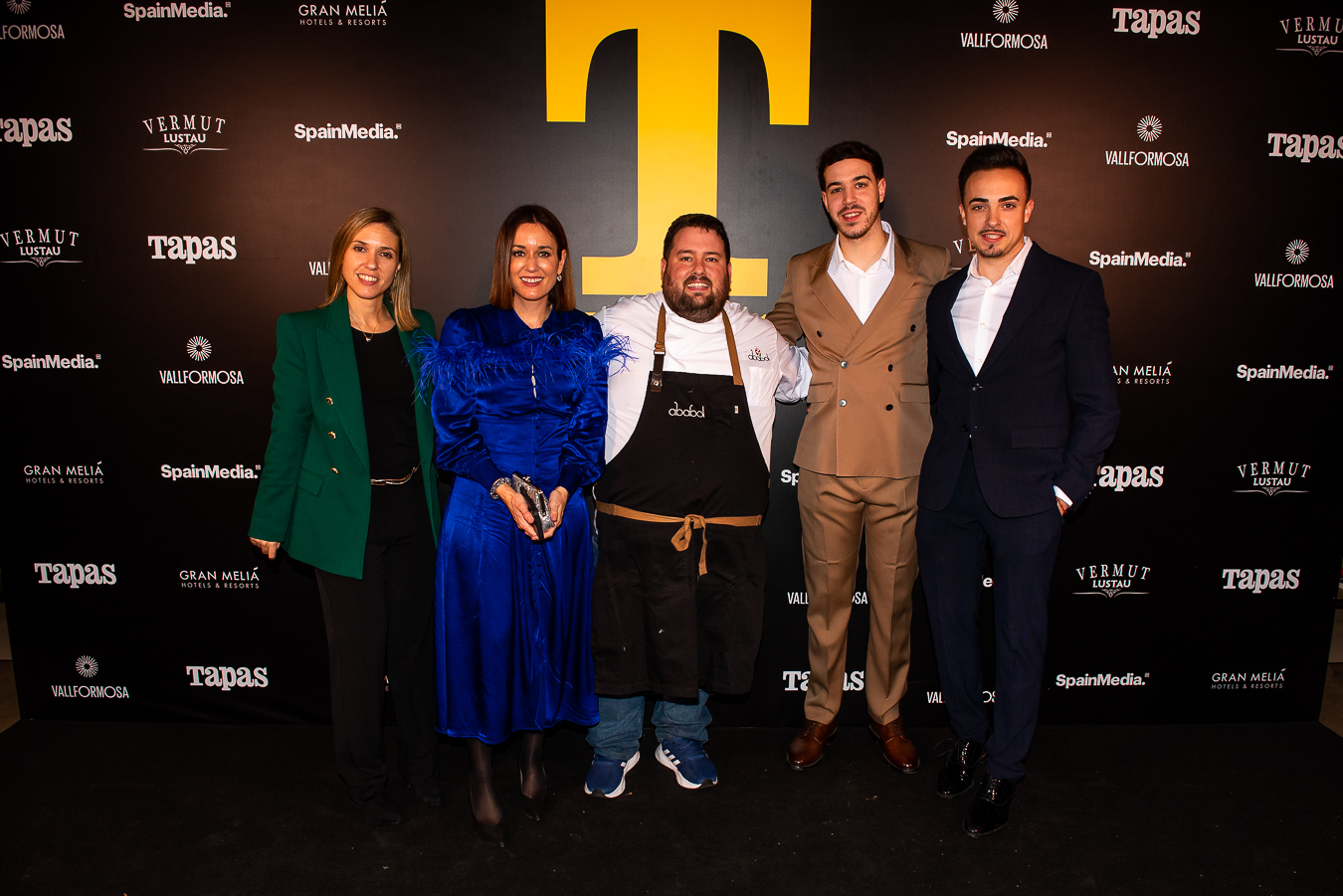 Foto grupal de todos los premiados en la primera edición de los T de Oro junto a Andrés Rodríguez, presidente de SpainMedia y director y editor de Tapas Magazine.
