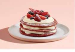 Servidas con un cremoso frosting de queso que equilibra a la perfección su sabor, estas tortitas se coronan con una mezcla de fresas, frambuesas, moras y arándanos frescos, creando una explosión de color y frescura en cada bocado. El toque final de azúcar glacé las convierte en un capricho tan bonito como delicioso, ideal para quienes buscan un postre elegante y que conquista no solo por su sabor sino también por su color.