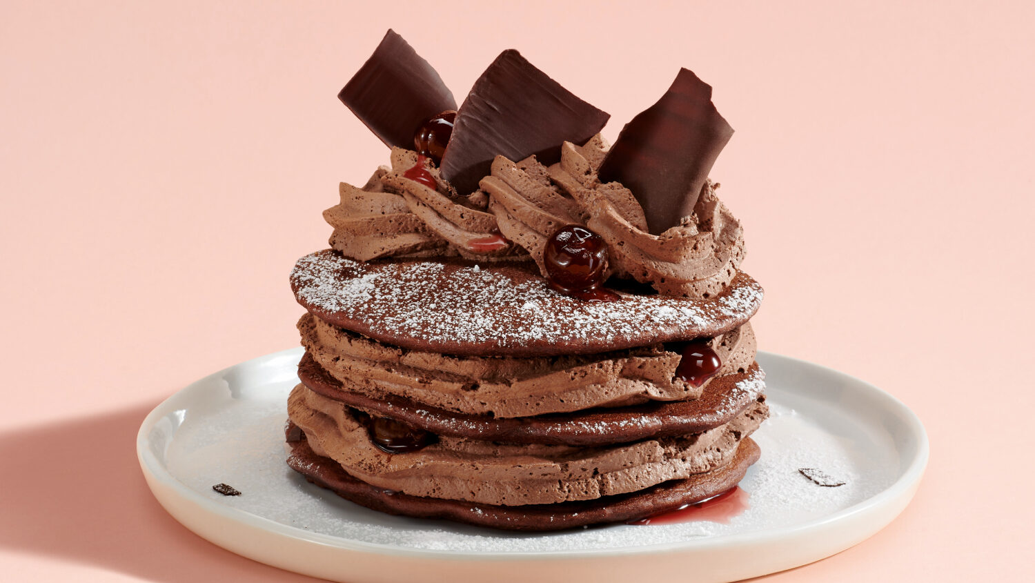 El placer más dulce de estas fiestas llega en forma de esponjosas tortitas de cacao, acompañadas de una suave mousse de chocolate, el toque elegante y ácido de la cereza negra amarena, virutas de chocolate y un delicado azúcar glacé espolvoreado. Una experiencia pensada para los verdaderos amantes del chocolate, perfecto para un plan especial o simplemente para disfrutar de un momento reconfortante.