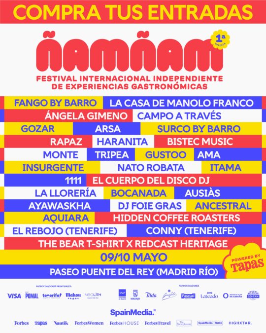 Ñam Ñam Festival, el primer festival de Tapas Magazine, llega a Madrid para transformar el Paseo Puente del Rey (Madrid Río) en un epicentro gastronómico y cultural. Durante su primera edición, más de 5.000 visitantes podrán disfrutar de tres sesiones repartidas en dos días -sábado de 12:00 a 16:00 h y de 16:00 a 00:00 h, y domingo de 12:00 a 17:30 h- explorando las mejores barras nacionales e internacionales, las reconocidas T’s de Oro y las últimas tendencias culinarias. Música, diseño, moda y cultura se suman a la experiencia, convirtiendo el evento en un recorrido sensorial único en la ciudad.
