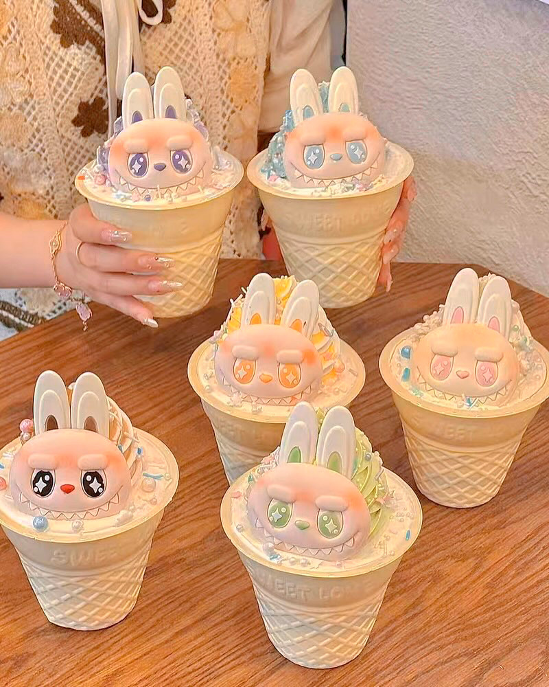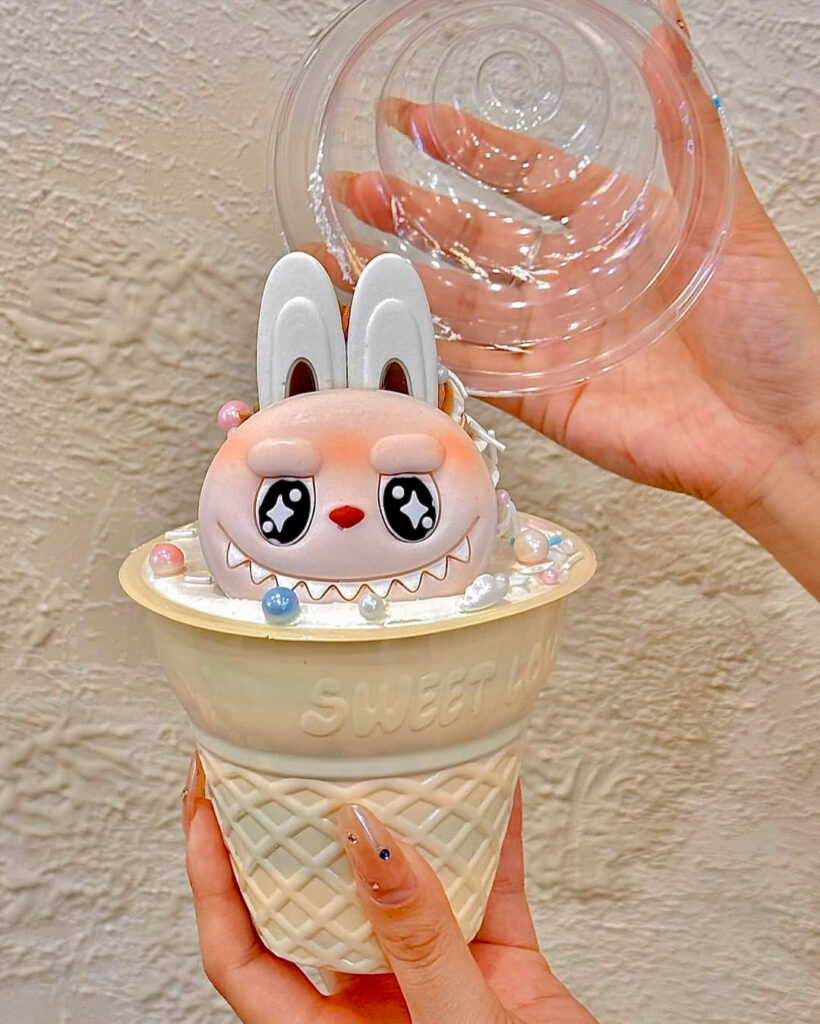 Los pastelitos de Labubu se presentan dentro de una tarrina grande, que incluye una tarta de nata en su interior. Ésta puede combinarse con diferentes sabores: de matcha, taro, chocolate y fresa. Además, cuentan asimismo con bebidas coronadas con las caritas sonrientes de la criatura con aspecto élfico. ¿Dónde encontrarlos? En Gran Via de les Corts Catalanes, 654, L’Eixample, Barcelona.