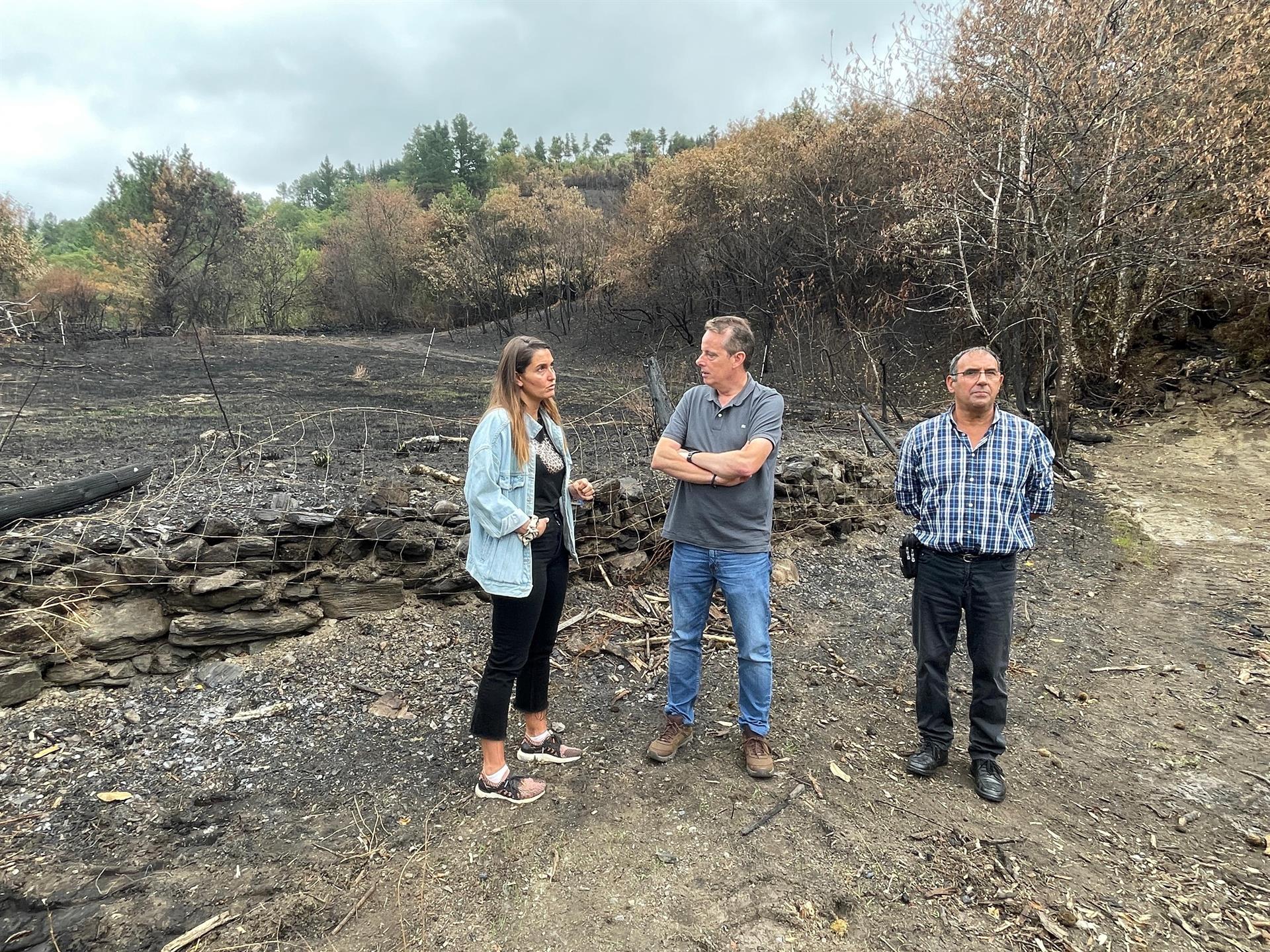El consejero de Medio Rural, Marcelino Marcos, ha realizado este martes una visita a las zonas afectadas por los incendios forestales en Ibias, donde ha destacado la inversión que se ha hecho en materia de prevención, aunque ha reconocido que las medidas «no han sido suficientes».