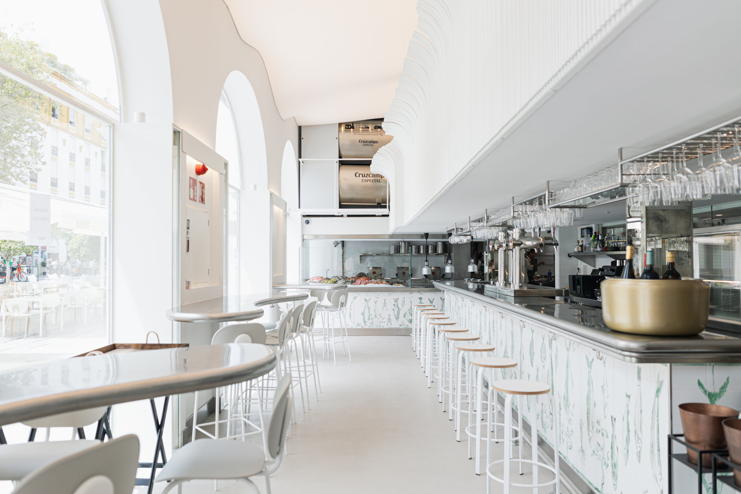 “Tendrá una barra chula y grande con una vitrina, que tiene que ser de las más grandes de España sin duda” presumía Zafra. No se reparará en producto ni en calidad, “habrá más de 50 referencias, empezando por bígaros, cañaíllas, caracoles, quisquillas, camarones, hasta llegar al bogavante. Un recorrido por las lonjas andaluzas, del Mediterráneo y también del Atlántico”.
