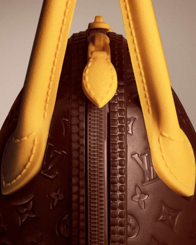 Como parte de La Collection de Pâques, el «bolso huevo de chocolate» rinde tributo al modelo original de Nicolas Ghesquière, director creativo de las colecciones femeninas de Louis Vuitton. Una pieza de alta pastelería de 1050 gramos confeccionado con artesanía y precisión.
