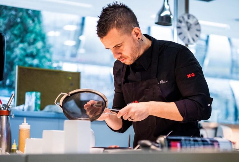 Están comiendo tempura de gambón salvaje y ceviche de lubina ‘a la minute’ de MISS SUSHI. Decoración de EL CORTE INGLÉS.