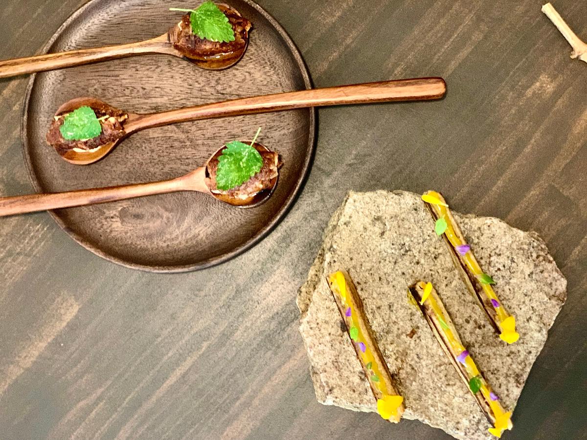 Desde hoy Mûd Wine Bar ofrece dos menús en defensa del territorio y la preservación del legado cultural del mismo. Adaja es la opción más informal y Mûd es una oda al entorno y sus raíces. 21 pases que se presentan en bocados que te llevan de paseo por el campo, por el huerto, por la viña, por todo el entorno que se extiende de puertas para afuera del local que custodia la muralla, aunque no es un secreto que a Carlos le de “rabia estar en la ciudad, porque cuando necesita ir al huerto le toca hacer kilómetros”, pero para él “la sostenibilidad está en la intención” y desde la distancia también se puede “apoyar pequeños proyectos y dejar dinero en la zona”.