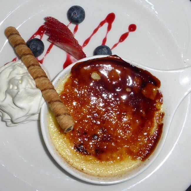 Se mete a gratinar en el horno. Se sirve espolvoreando por encima almendra picada y nos bizcochos de acompañamiento.