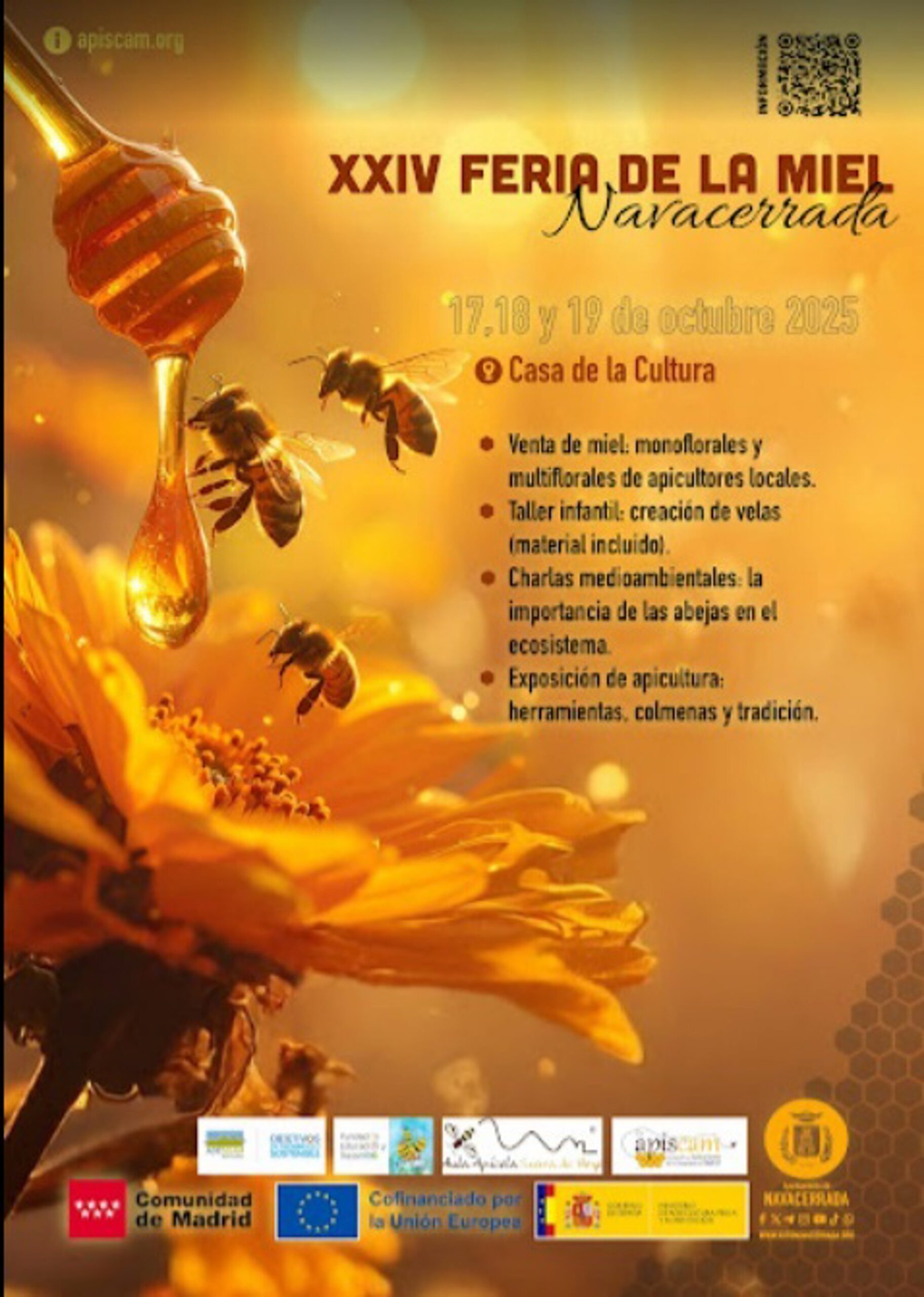 El Ayuntamiento de Navacerrada y la Asociación de Apicultores de la Comunidad de Madrid, en colaboración con la Comunidad de Madrid, la Asociación de Desarrollo Sierra de Guadarrama (Adesgam), y el Aula Apícola Sierra de Hoyo, organizan la XXIV Feria de la Miel en la Casa de la Cultura con actividades para toda la familia como talleres, exposiciones, o presentaciones de libros.