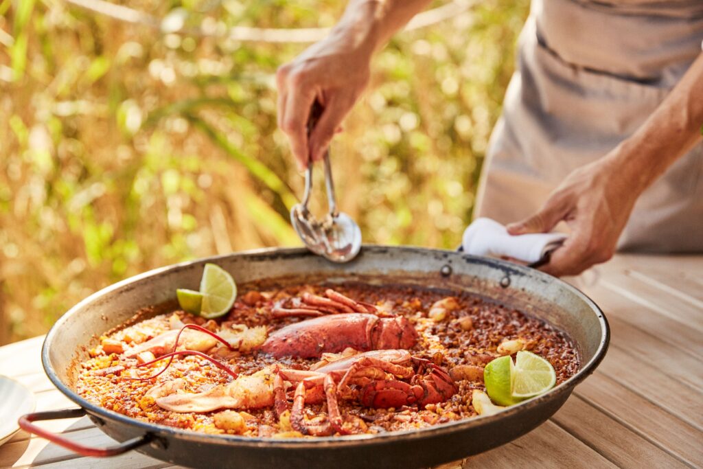 Si Nobu Restaurant mira a Japón, Chambao representa la conexión más pura con el Mediterráneo. Situado a pie de playa, este chiringuito de lujo es una invitación a disfrutar sin prisa, con los pies en la arena y una copa de vino blanco bien frío. La carta está inspirada en la cocina mediterránea con productos de proximidad: mariscos recién pescados, pescados al horno de sal, arroces y ensaladas frescas.