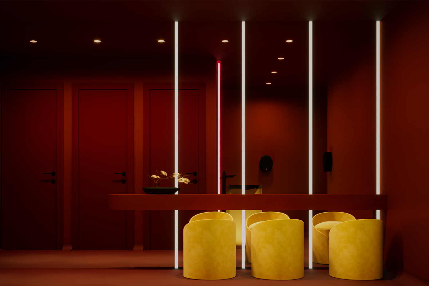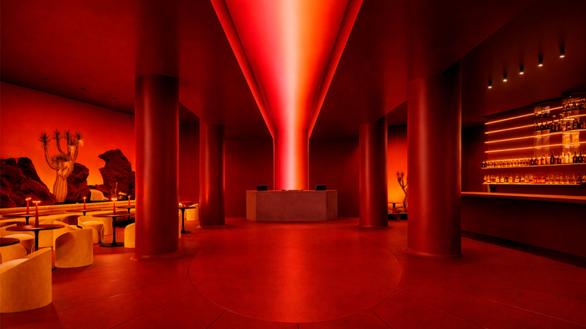 El diseño del club -iluminado por neones rojos- ha corrido a cargo de Sos Wilkinson y Dukant Atelier, quienes se han unido para llevar la arquitectura, el interiorismo, el sonido y la tecnología a la discoteca. En paralelo, la identidad visual ha sido desarrollada por Pascal Moscheni, dj y diseñador conocido por crear conceptos que trascienden la identidad del club tradicional, junto al director de arte Daniel Sansavini, que cuenta con una amplia experiencia en el mundo de la moda, la música y el sector editorial.