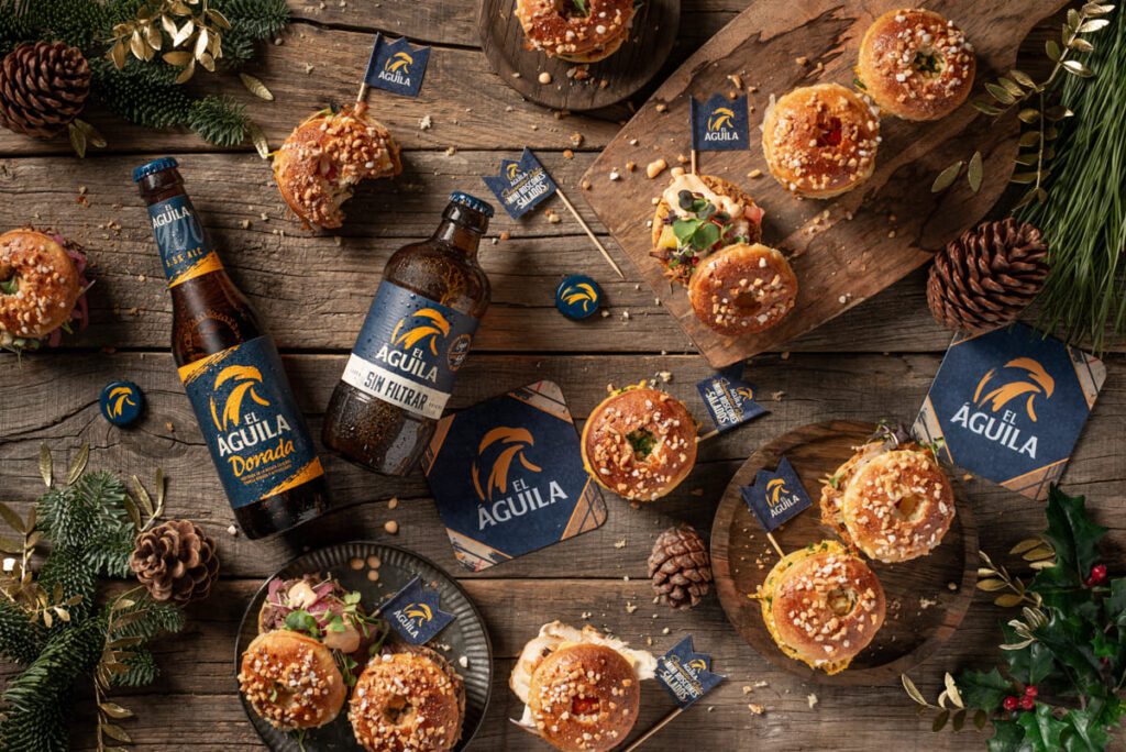 Tras el éxito de esta propuesta durante la Navidad del 2021, El Águila no ha dudado en lanzar la segunda edición de los miniroscones salados, que estará disponible del 22 de diciembre al 8 de enero en 26 puntos de la capital. De esta forma, e inspirados en el ritual de consumo de su cerveza, El Águila propone darle un giro al tradicional roscón de Navidad para crear la versión salada del mismo. Una selección de recetas sorprendentes que se podrán probar a través de una ruta en formato aperitivo, ideada para ser maridada con sus cervezas.