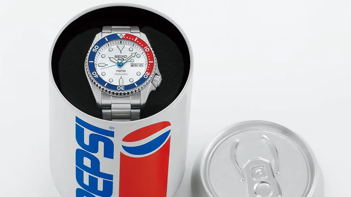 Pepsi y Seiko han combinado su ADN en dos nuevos modelos deportivos de los relojes Seiko 5 que saldrán a la venta el 5 de septiembre. Las siluetas se inspiran en los logos de la marca Pepsi de los 90 y de la actualidad, trazando una línea de conexión entre el pasado y el presente.