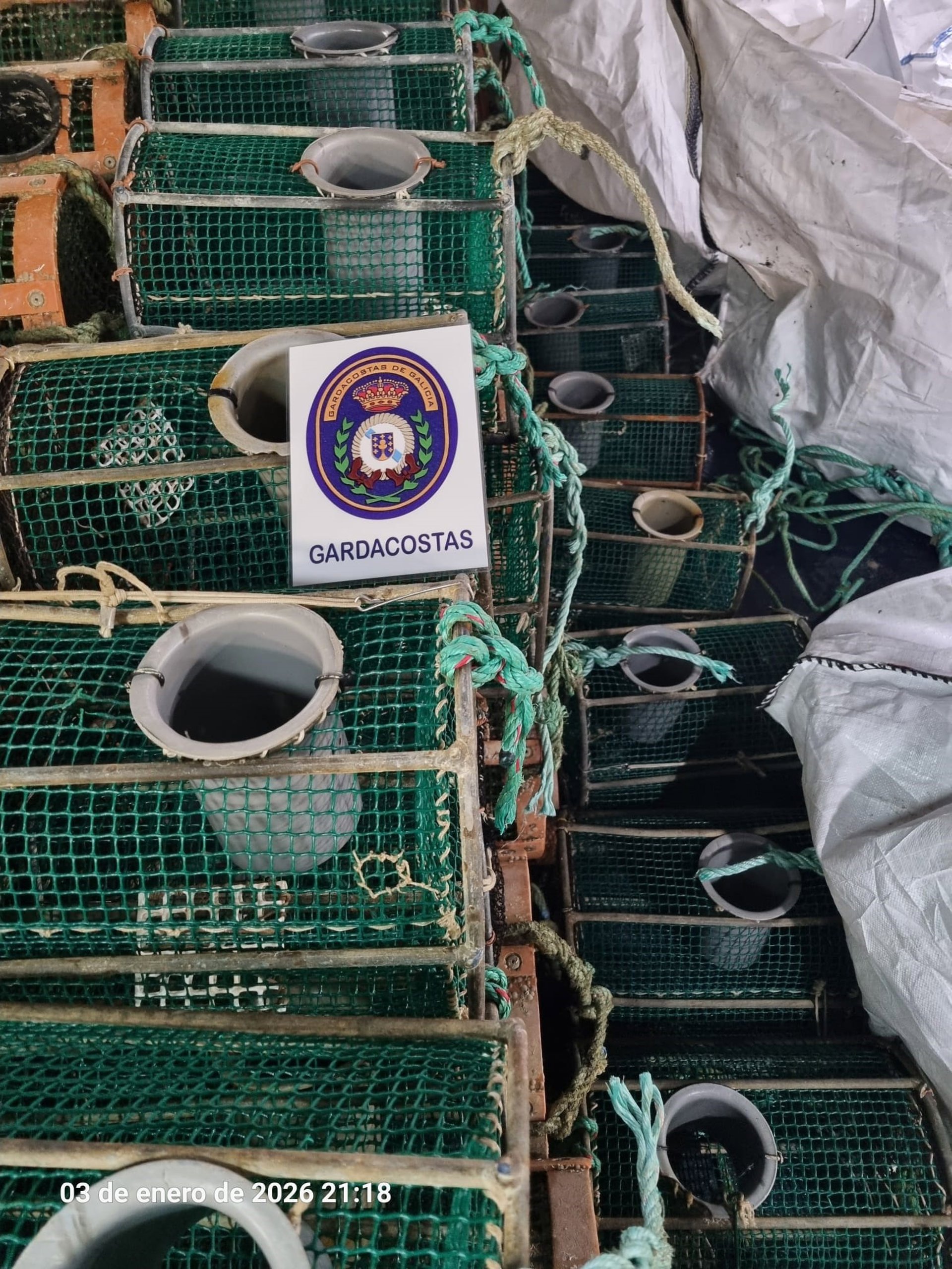 Guardacostas de Galicia ha cerrado el año 2025 con un balance de 9.704 inspecciones, más de 36.000 aparatos de pesca prohibidos retirados y con 27.477 kilos de producto, principalmente marisco y pescado capturado de forma irregular, incautados.
