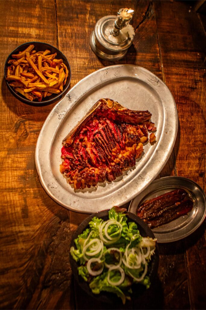 Dirigido gastronómicamente por Oswaldo González Herce, el restaurante fusiona la esencia de un bar madrileño con la calidez de una parrilla en medio de un espacio sofisticado en el que el fuego es el eje central de una cocina sin efectismos. “El producto brilla con luz propia”, describen desde el local madrileño sellado por el producto de máxima calidad, de cercanía y temporada.