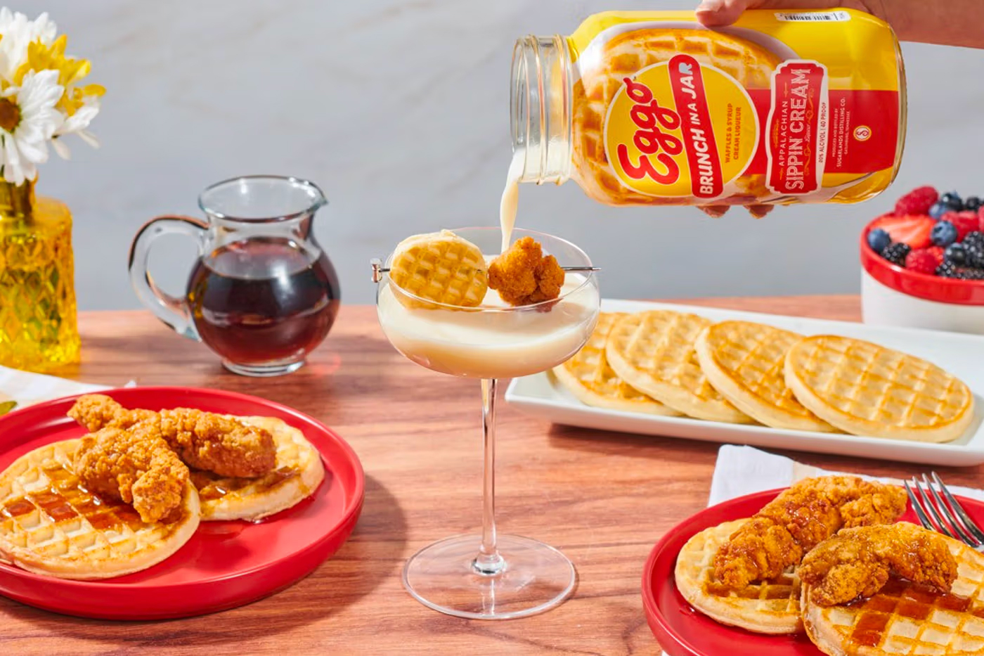 Una corriente sorprendente que siguió in crescendo con la asociación de Kellog’s con Sugarlands Distilling para presentar una bebida alcohólica inspirada en los gofres: ‘Eggo Brunch in a Jar’. Esta mezcla de color crema envasada en un tarro, contiene un 20% de alcohol y supuestamente sabe directamente a brunch y/o a los gofres Eggo rociados con sirope.