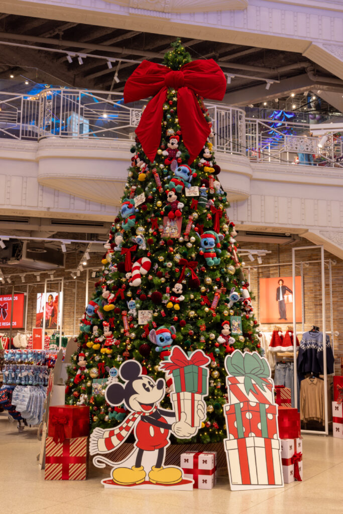 A su alrededor, la decoración festiva envuelve la tienda con una narrativa visual cuidada al detalle. Luces, ornamentos y una ambientación pensada para sorprender convierten el recorrido en un paseo sensorial, donde cada rincón invita a detenerse un momento más.