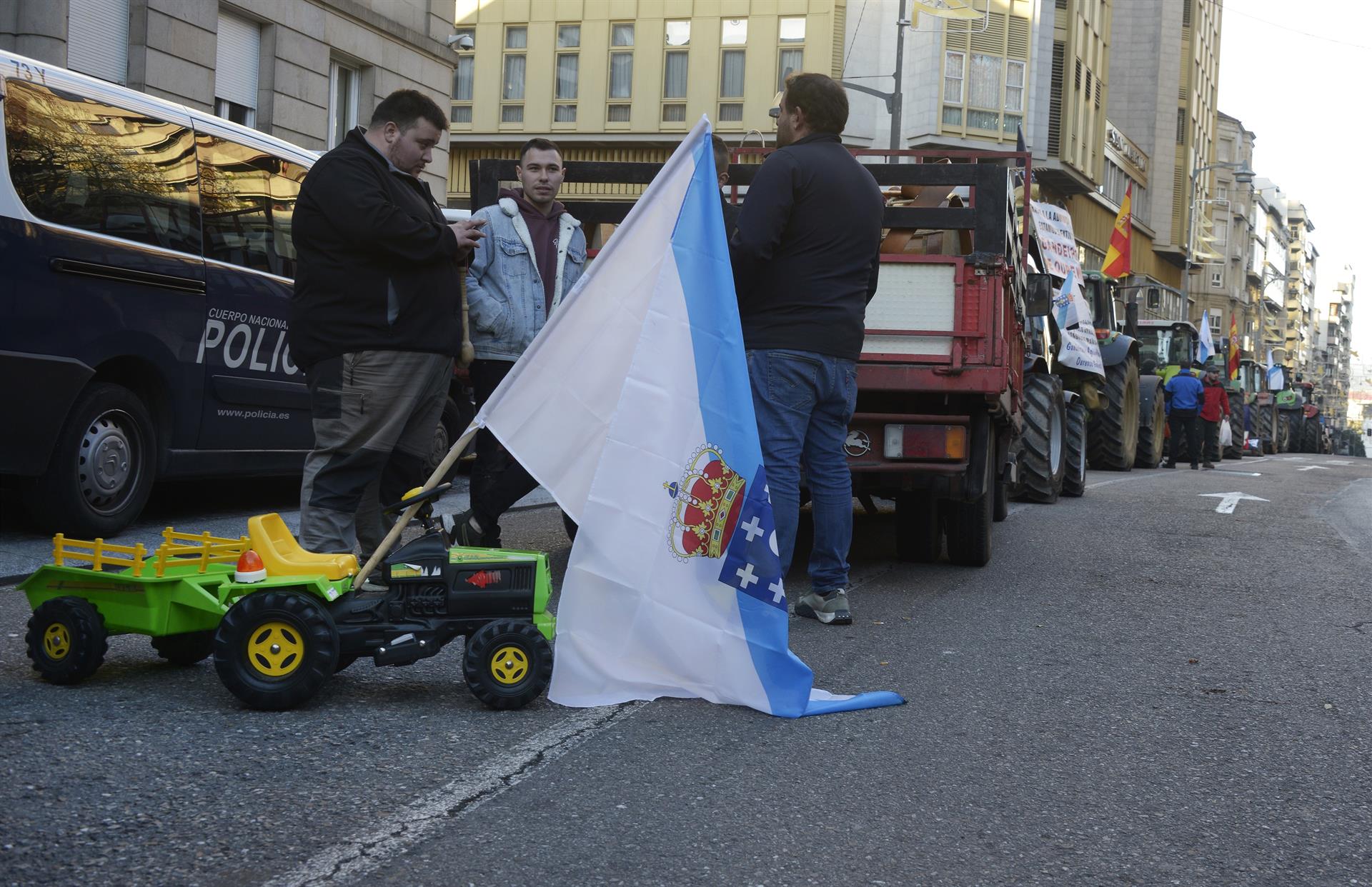 Por su parte, ganaderos ourensanos, convocados por la Asociación do Sector Primario de Galicia, continúan con sus tractores aparcados en el centro de Ourense, adonde llegaron para protestar ante la Subdelegación del Gobierno el pasado 29 de diciembre.