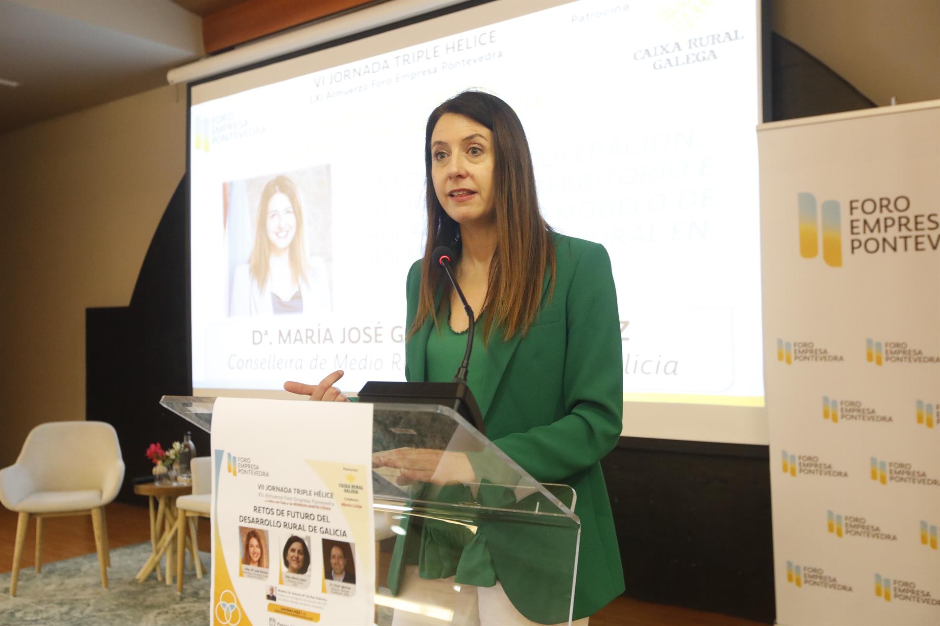 Tal y como ha trasladado la Xunta en una nota de prensa, la conselleira ha participado este viernes en la ‘VII Xornada Triple Hélice’ en el marco del ‘Foro Empresa Pontevedra: Retos de futuro do desenvolvemento rural de Galicia’.