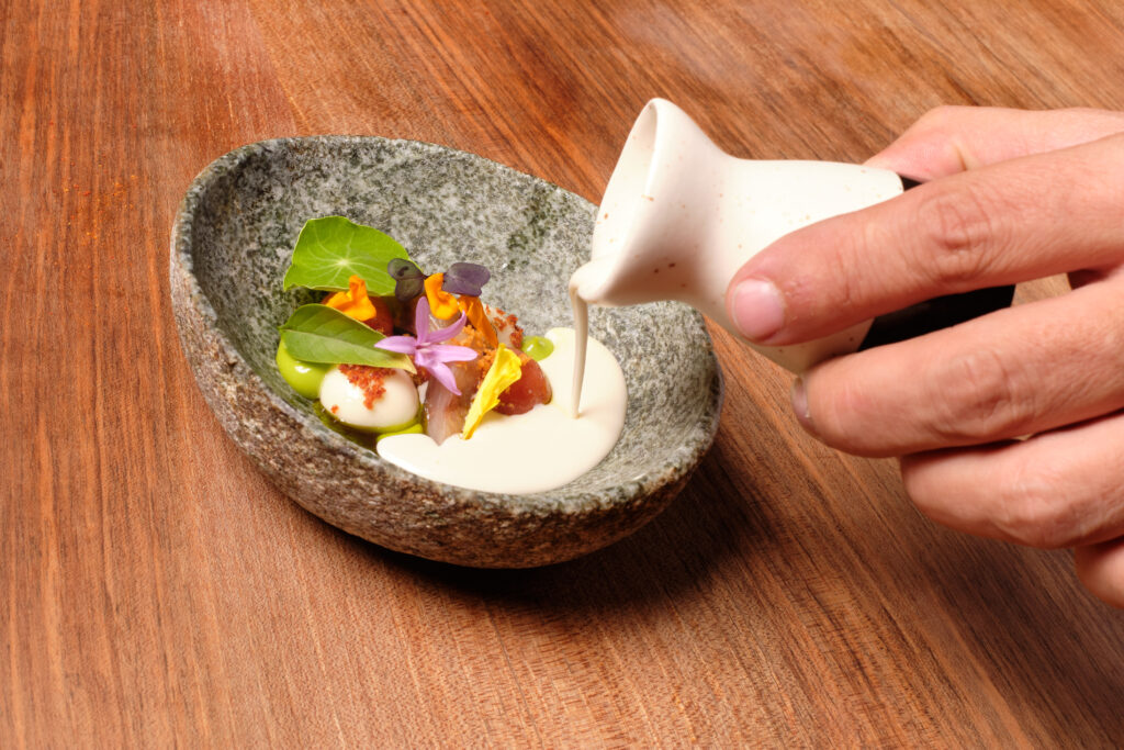La visita a Asiakō nos concede la oportunidad de viajar hasta Japón a través de la cocina fusión vasco-asiática que elaboran los chefs Sergio Monterde y Raúl Romero. Aquí el menú se compone de los platos más característicos del lugar como son el talo de hamachi con tártara y aguacate o la gyoza de rabo de toro con queso Idiazábal y yema de codorniz; el resto, hay que ir para descubrirlo.
