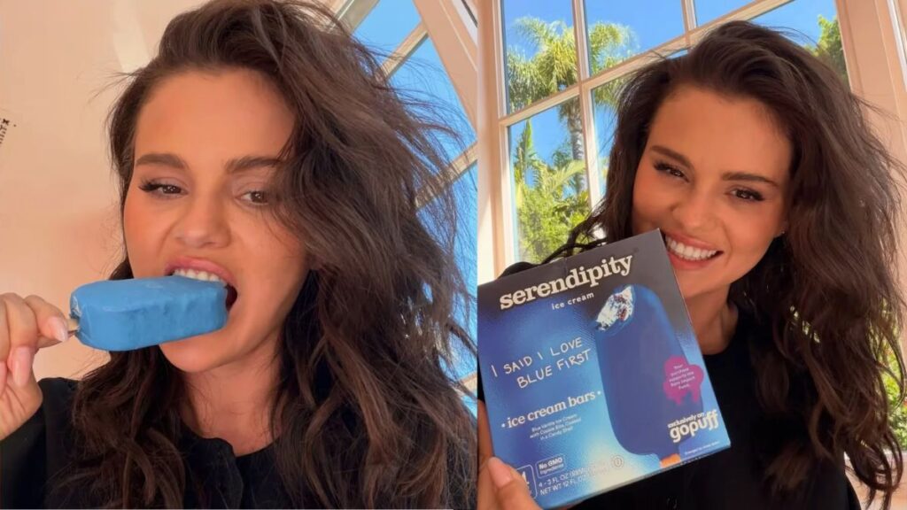 El último se denomina I Said I Love Blue First y se trata de de un helado con una clara declaración de intenciones. Creado junto a Serendipity Ice Cream y la plataforma Gopuff, el dulce celebra el aniversario del álbum que marcó le regreso a la música de la cantante tras cuatro años de pausa, y su nombre (y color) conecta directamente con la canción “Bluest Flame”, ligada a su historia con Benny Blanco.