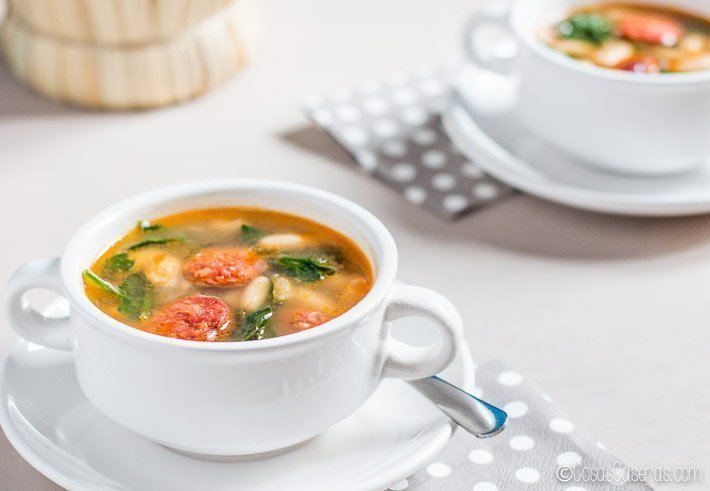 Es cierto que las legumbres se saborean con gusto en cualquier época del año. Pero también es verdad que con la bajada de temperaturas y el frío del invierno se disfrutan aún más. Sobre todo si viene acompañadas por un buen caldo de sopa y algo de embutido que le de un extra de sabor como la receta del libro Súper sopas para comidas completas que te proponemos elaborar hoy. Solo necesitarás 10 minutos de preparación y 30 de cocción y listo para coger cuchara y no parar.