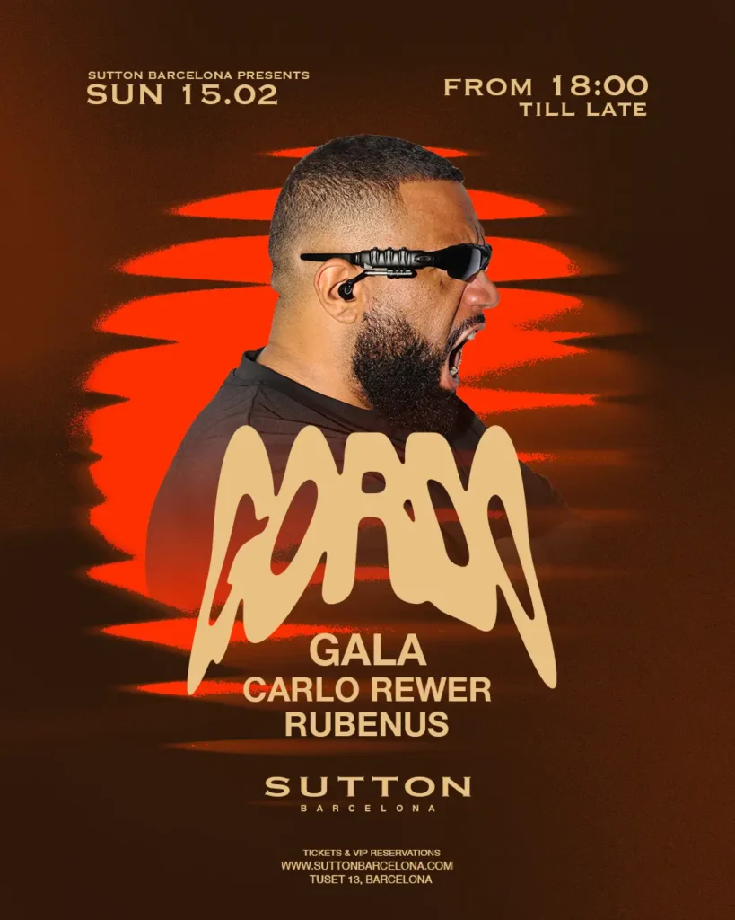 Acto seguido, nos iremos de tardeo para bailar hasta la medianoche con las mezclas deGordo,Gala, Carlo,Rewer y Rubenus. ¿Dónde? en Sutton Barcelona, uno de los clubs de referencia de la vida nocturna de BCN, en el que pinchará Gordo, icono de la música dance y de la electrónica, que ha producido para artistas de la altura de Drake y Bad Gyal. No te la puedes perder.