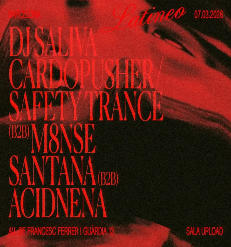 Por la noche, cambiaremos el modo para sincronizarnos con el LATINEO. La fiesta llevará a la Sala Upload a un elenco de djs de techno, house y calor latino conformado por Dj Saliva, Safety Trance, M8NSE, Acidnena y SANTANA con los que bailar sin parar hasta el cierre.