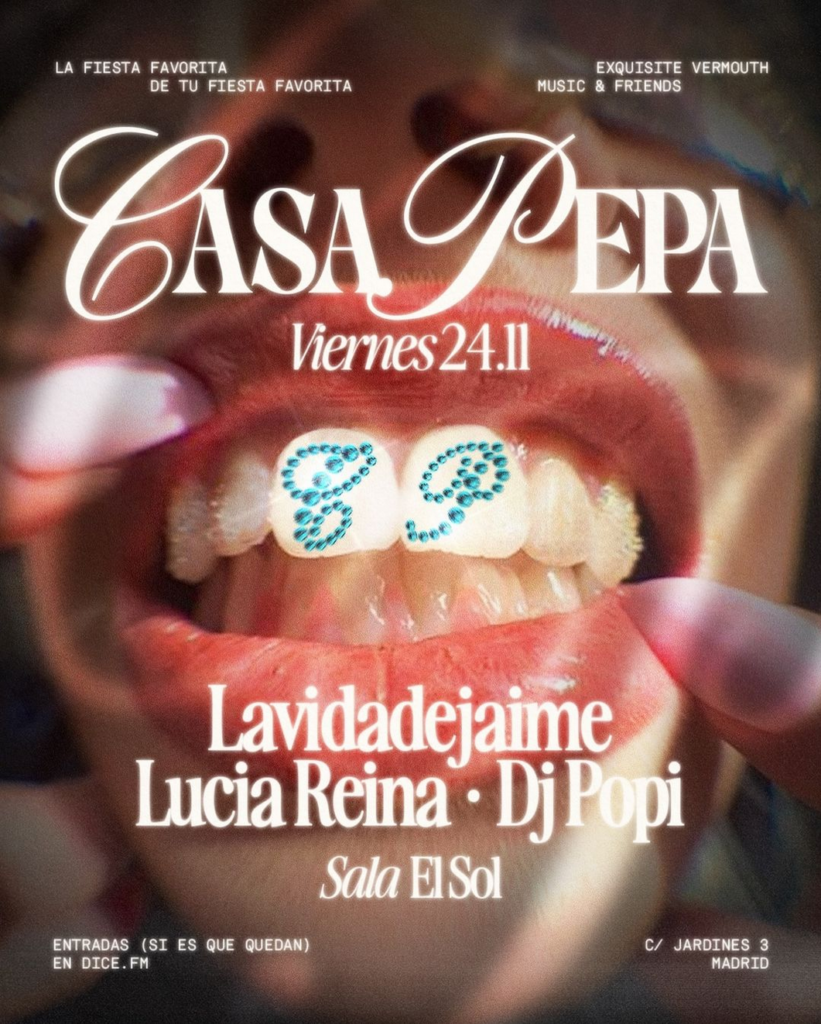 Al salir la luna, reactivaremos el modo castizo en otro escenario: Casa Pepa. En su fiesta en la Sala El Sol, bailaremos hasta el amanecer con los sets de sus dj residentes @lavidadejaime y @djpopi_, y el debut de @_luciareina, que fusionarán sonidos electrónicos y urbanos en un mismo ritual habitado por las comunidades artísticas y creativas de la capital. Si aún no tienes tu pase, consíguelo aquí.
