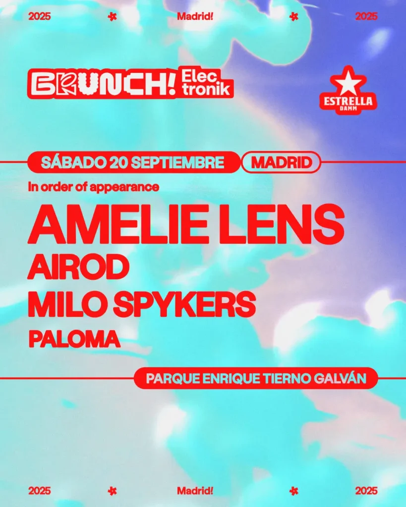 Por la tarde, continuaremos el circuito en otro formato. Nos iremos al parque de Tierno Galván para reconectar con un nuevo Brunch Electronik, que inicia fuerte la temporada de otoño con los sets de alto voltaje de Amelie Lens, Airod, Milo Spykers y Paloma. Coge aquí tu pase, antes de que se agoten las entradas.
