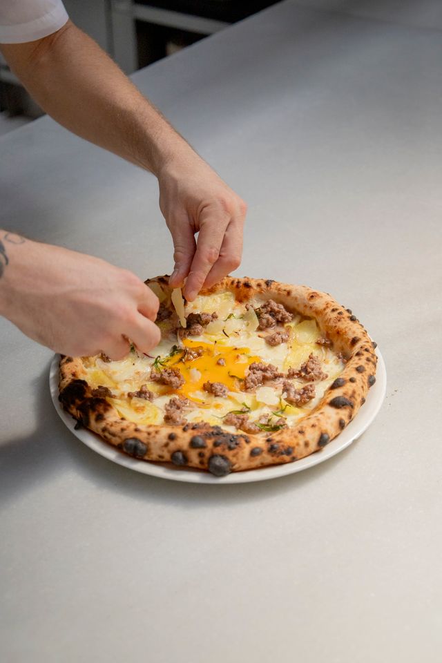 El domingo continuaremos la cata de pizzas desde uno de sus grandes templos: Parking Pizza. El restaurante acaba de lanzar la pizza del otoño junto a Petramora y Rooftop Smokehouse. Una receta en la que sale a relucir el arte de las brasas y del fuego con una mezcla de ternera ahumada, láminas de patata patata, queso pecorino, yema de huevo y aceite de estragón fresco, sobre su ya icónica masa de fermentación lenta y horneada en horno de leña.