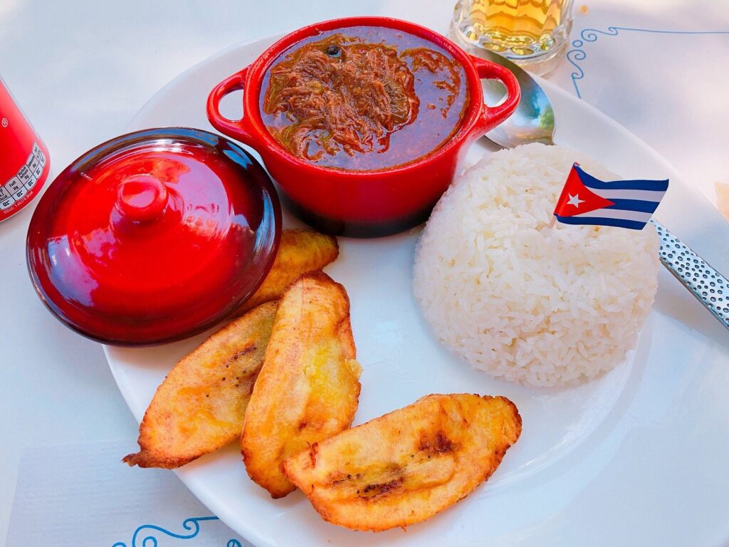 La carta del local se divide entre platos de cocina tradicional y creativa, entre los que relucen platos estrella como la ropa vieja con arroz blanco y plátanos maduros fritos, los huevos rotos con picada a la habanera o el boniato relleno de salmón con una cobertura crujiente de cacahuetes. Todo ello acompañado de un mojito o una piña colada en mano, y de una vibrante música cubana de fondo.